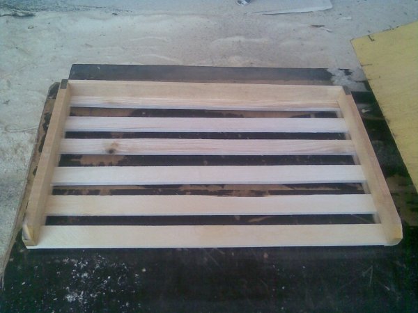 Изготавливается из гладко пиленной доски, с металлическими уголками.